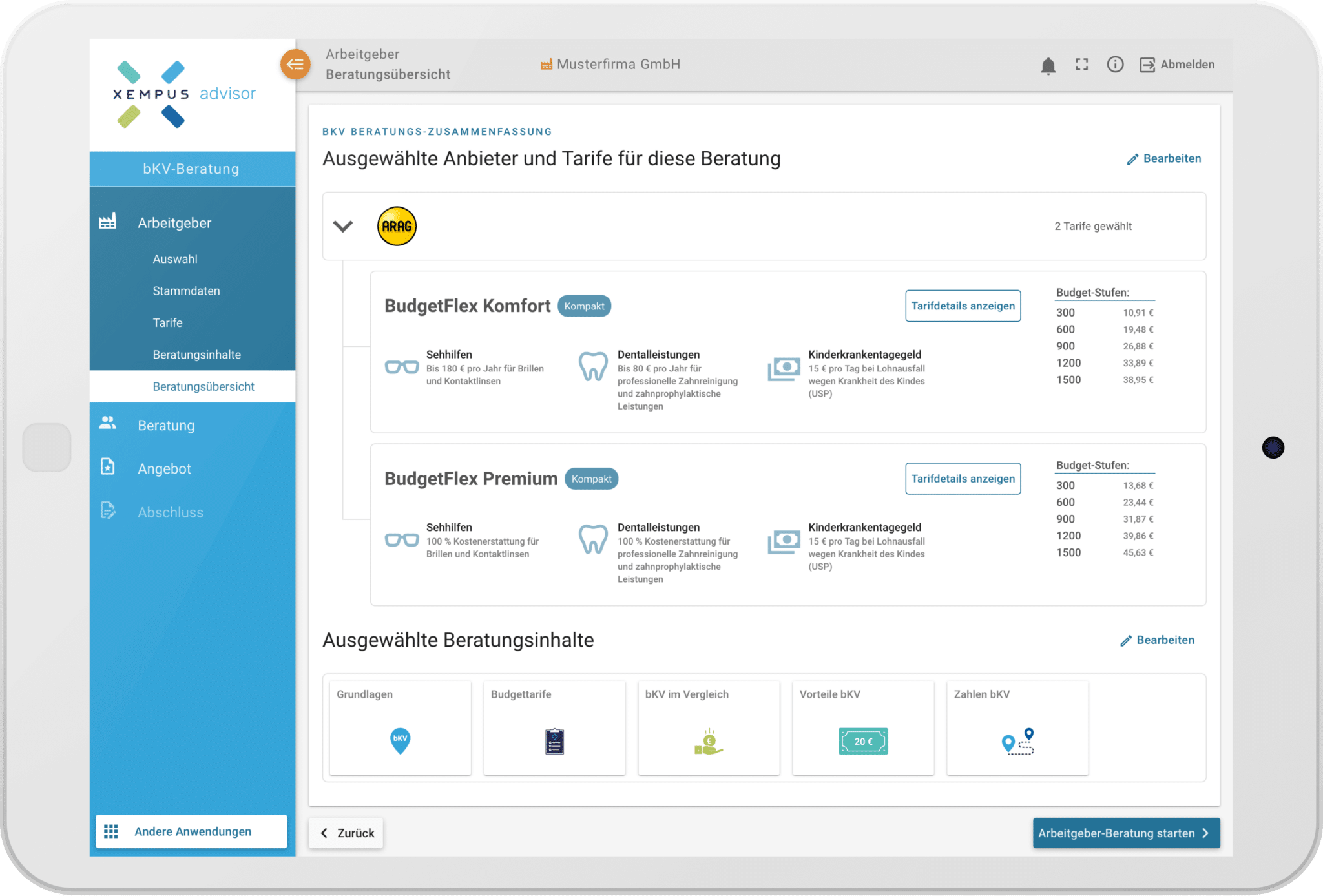 „Der aktuelle Marktstart unserer neuen leistungsstarken Budgettarife ARAG BudgetFlex wird flankiert durch die moderne Plattformlösung von Xempus, die digital und einfach nutzbar ist“, sagt Dr. Roland Schäfer, Vorstandsmitglied der ARAG Krankenversicherungs-AG. „Die nutzerfreundliche Arbeitgeberberatung und eingebaute Dunkelverarbeitung im Antragsprozess machen daraus ein überzeugendes Gesamtpaket für Vermittler und deren Arbeitgeberkunden.“